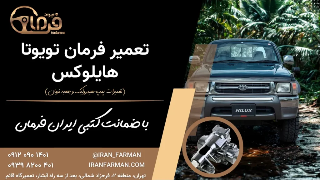 ایران فرمان، بهعنوان مرکز تخصصی تعمیر سیستمهای فرمان در تهران، با ارائهٔ خدمات حرفهای، استفاده از قطعات اصل، ضمانت کتبی ۲۴ ماهه و مشاورهٔ تخصصی، انتخابی مطمئن برای صاحبان تویوتا هایلوکس است.