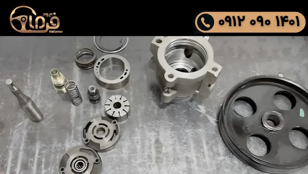 باز کردن پمپ و بررسی قطعات داخلی: پمپ هیدرولیک دارای پرهها (vane) و سیلندرهایی است که روغن را تحت فشار قرار میدهند. در فرآیند تعمیر، پمپ باز میشود و پرهها، شفت، یاتاقانها و کاسهنمدها از نظر فرسودگی یا شکستگی بررسی میشوند. اگر پرهها یا شفت سائیده شده باشند، باید تعویض گردند.